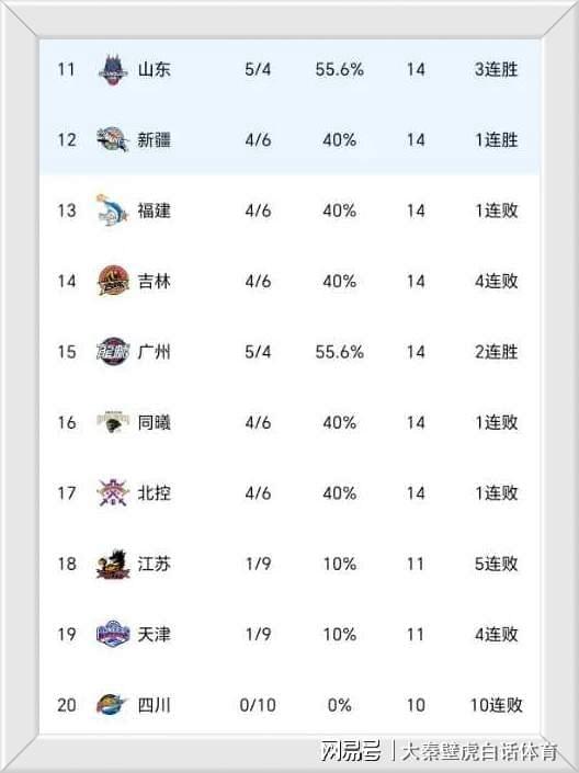 吉林隊(duì)賽季初的表現(xiàn),令人眼前一亮,最近三輪又被打出原形。廣州、福建隊(duì)、同曦隊(duì)實(shí)力都不強(qiáng),對(duì)陣時(shí)卻全都敗北,排名持續(xù)下降。