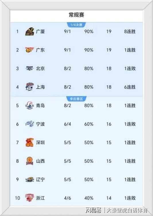 ③、7-9名的深圳、山西、遼寧隊(duì),同為5勝5負(fù),季后賽爭(zhēng)奪激烈。