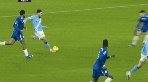 第42分鐘,謝爾基準(zhǔn)備直塞給哈蘭德,皮球被巴迪亞希勒攔截后到了賴因德斯的腳下,賴因德斯連續(xù)假動作閃出角度,爆射死角,曼城取得領(lǐng)先。